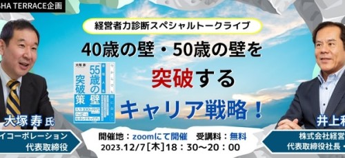 2024年8月20日(火)18:30-20:00 【公開収録】国内外から愛される日本酒「獺祭」。ニューヨーク進出で注目を集める旭酒造、代表桜井氏が目指す海外展開や組織づくり 2024年7月23日(火)18:30-20:00 【経営者力診断スペシャルトークライブ】上司としての悩みを一掃する! Z世代を育てる・人を動かす・転職で成功する 上司コミュニケーション術 2024年7月16日(火)18:30-20:00 【経営者力診断スペシャルトークライブ】だから上司のあなたの話はツマラナイ… おもしろいと思われる話し方のコツ大全! 2024年5月14日(火)18:30-20:00 【KEIEISHA TERRACE企画】経営者力診断スペシャルトークライブ これからの会社の成長の鍵を握る! <決定版>営業トップは、こう戦え! 2024年4月25日(木)18:00-20:00 【KEIEISHA TERRACEセミナー】経営者力強化講座~120分で手に入れる! 経営人材として活躍する5つの力 2024年3月8日(金)18:30-20:00 【経営者力診断スペシャルトークライブ】キーエンスに学ぶ!高賃金化〜経営者と社員で「高収益」かつ「高給与」を実現する方法 2024年2月6日(火)18:00-19:30 【KEIEISHA TERRACE企画】2024年大予測:どうなる?どうする?ミドル・シニアのキャリアと転職 2024年1月23日(火)18:30-20:00 【公開収録】創業10年の節目に「PRONI株式会社」へリブランディング。 国内最大級の受発注プラットフォーマーが目指す未来 2023年11月28日(火)18:30-20:00 【Youtube無料ライブ!】経営者力診断スペシャルトークライブ:経営者・リーダーのための、メンバーの強みを活かしきるチームのつくりかた 2023年12月7日(木)18:30-20:00 【経営者力診断スペシャルトークライブ】40歳の壁・50歳の壁を突破するキャリア戦略! 12345678»